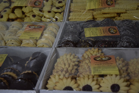 Ciastka: kruche, karbowane, stokrotki, Emilki, fantazja, bezy „Oli”, kokosanki, pawie oczka, czokusie, bingo, baletki, muszelki, toffi, biszkopty, paluchy, pierniki, jeżyki pieguski, sękacze, anyżki, markizy, rożki, francuskie, trójkąty, babeczki nadziewane, gniazdka, pączusie,